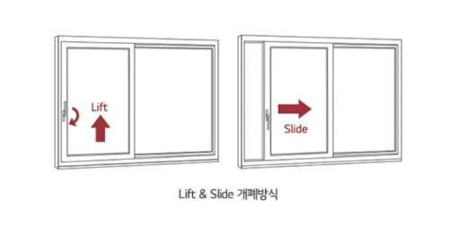 창을 들어 올려 여는 유럽식 개폐 방식으로, 창을 열 때는 창짝이 들려 올라와 부드럽게 열리고 잠글 때는 창짝이 아래로 내려와 밀폐력을 높이는 시스템이다.